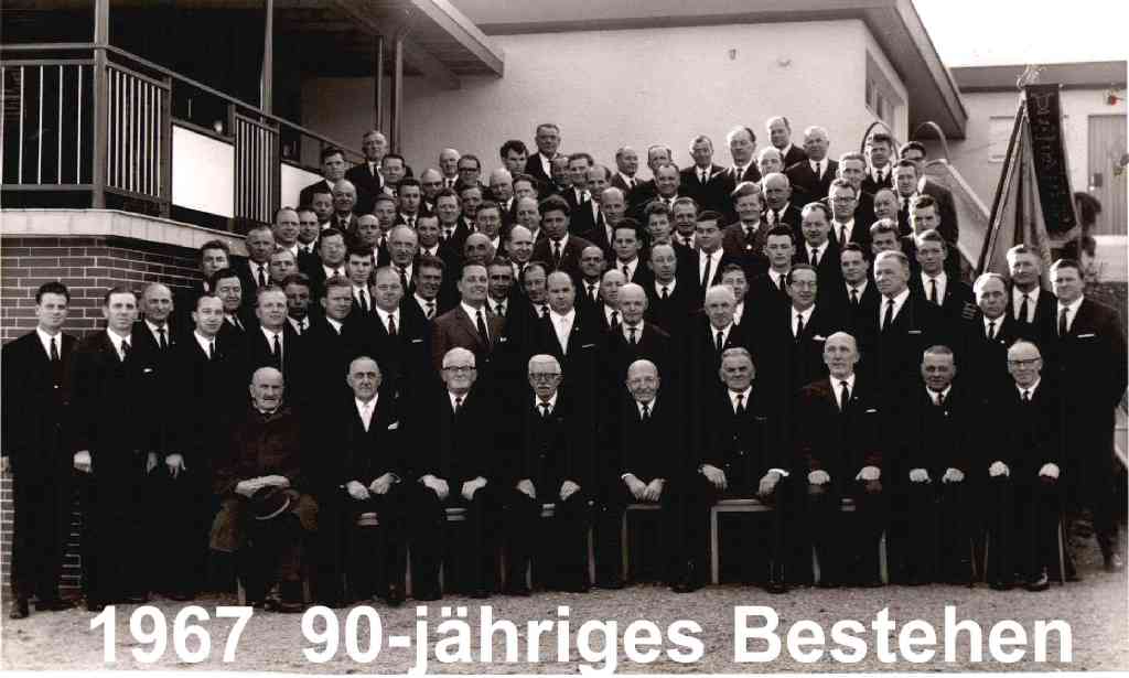 1967: 90-Jahr-Feier, Schirmherr ist Benno Erhard (MdB). Festkommers, Gruppen/Kreisleistungssingen und Freundschaftssingen. Bandaufnahme im Hessischen Rundfunk.